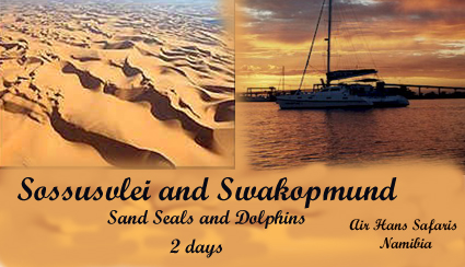 Ein kurzer Transfer am Morgen bringt Sie nach Walvis Bay, von wo aus Sie eine interessante Bootsfahrt auf einem Catamaran durch die Lagune Walvis Bay’s unternehmen. Sie werden Robben hautnah miterleben,etwas über die Geschichte Walvis Bay’s mit seinem Tiefseehafen lernen und mit etwas Glück werden Sie auch Delfine sehen.